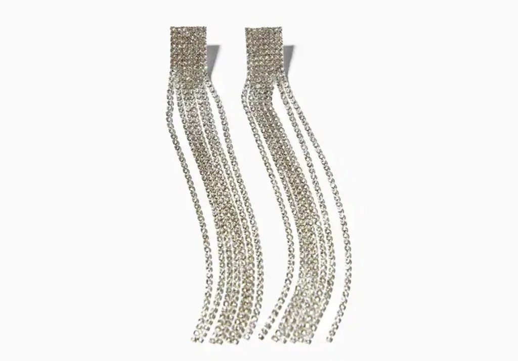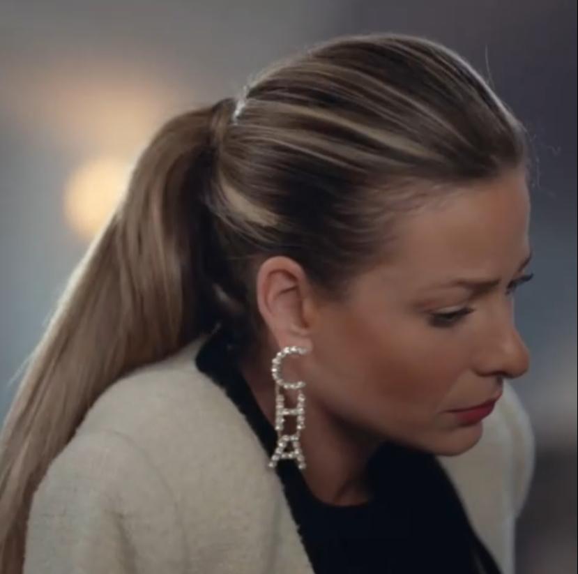 ومرة أخرى ظهرت وهي ترتدي حلقًا مرصعًا بالألماس، طويل ومتدلي، مما أعطاها مظهرًا راقيًا وجذابًا، واختارت على نفس النهج حلقًا آخر بنفس الشكل تقريبًا، لكن باللون الأسود، مع وجود حجر بارز باللون الأسود أيضًا، مما أعطاها مظهرًا جريئًا ومميزًا.
