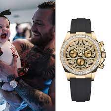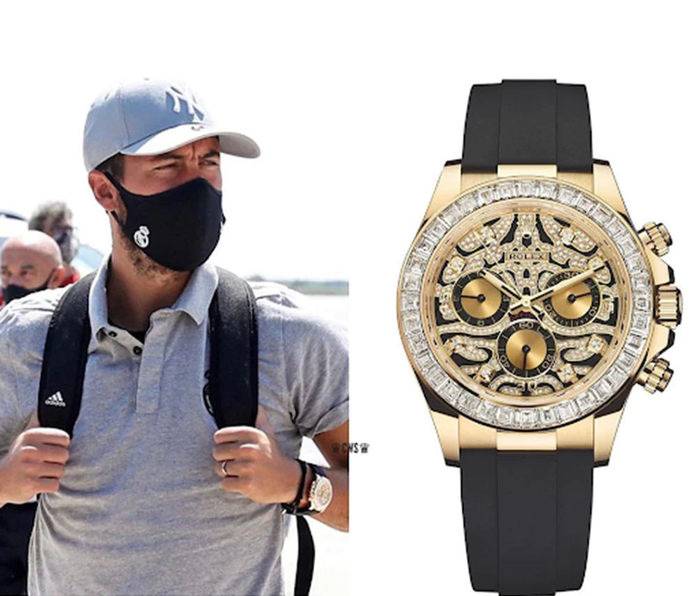 فقد ارتدى ساعة من ماركة رولكس المعروفة بـ “كوزموجراف دايتونا – عين النمر”، والتي تمتاز بأنها مصنوعة من الذهب عيار 18 ومرصعة بـ 36 قطعة ماس، ويبلغ سعر هذه الساعة حوالي 500,126 ألف دولار، ما يعادل 15,409,585 جنيه مصري.