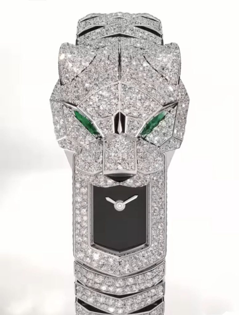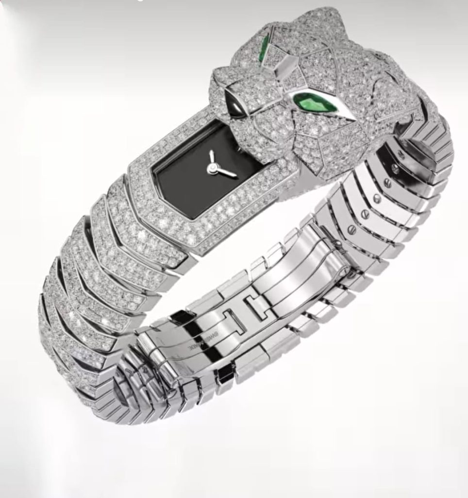 وبهذا الإصدار الماسي الجديد تستمر ساعة PANTHÈRE DE CARTIER في تعزيز مكانتها كواحدة من أبرز الساعات النسائية في العالم، حيث يتم دمج التصميم الرائع والتفاصيل الدقيقة معًا في قطعة واحدة رائعة، لتعبر عن الفخامة والأناقة العصرية، وستظل رمزًا للتراث والتميز الذي تمتاز به دار كارتييه في عالم صناعة الساعات الفاخرة.