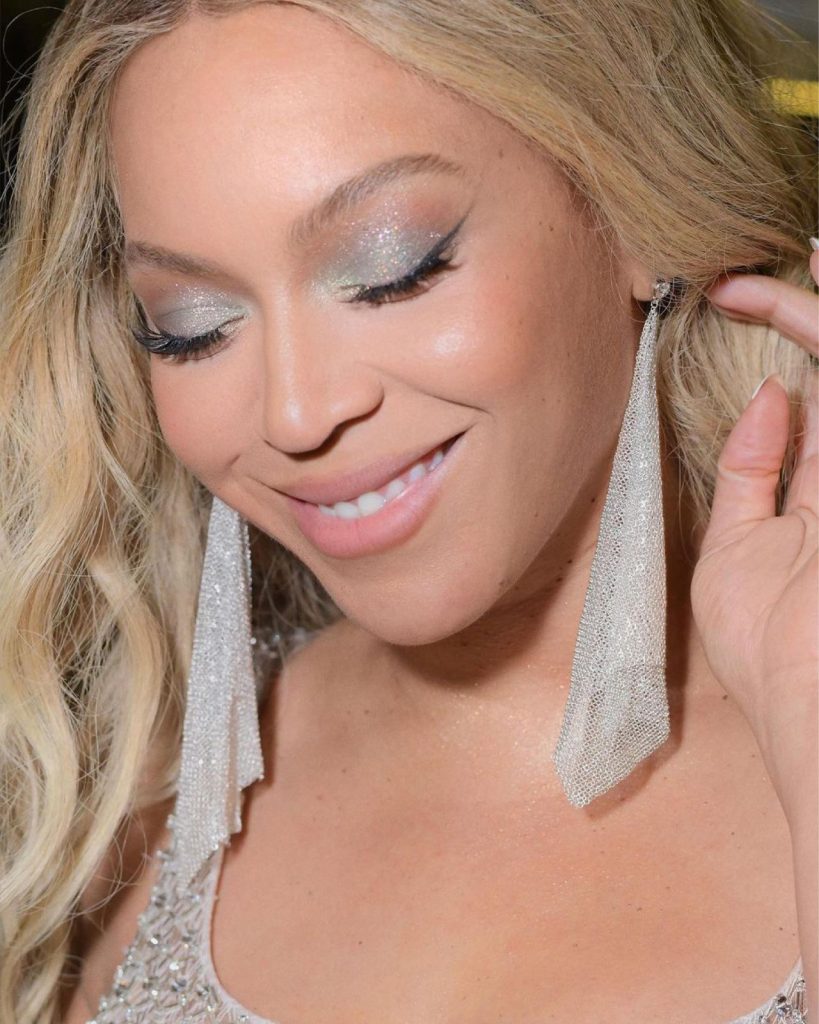 كما نسقت بيونسيه أقراط تيفاني المميزة مع فستان بيونسيه فستانًا من الدانتيل مخصصًا مع تطريز كريستالي مستوحى من قرص العسل، مستوحى من أزياء فندي كوتور لربيع وصيف 2021 في حفل إطلاق ألبومها السابع “النهضة” في تورونتو.
