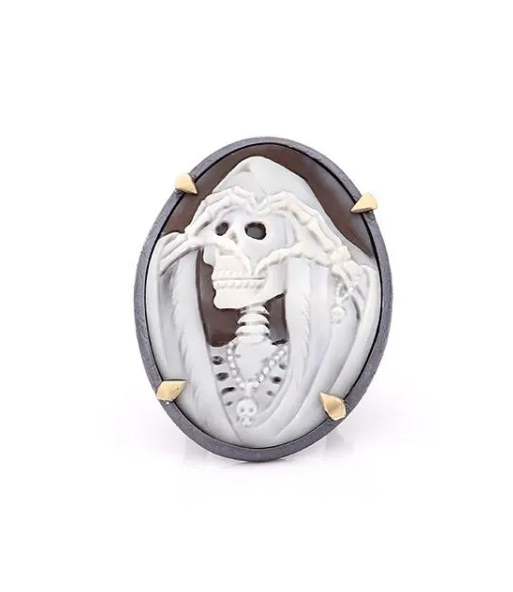 من بين القطع الأكثر شهرة في مجوهرات الهالوين تصاميم المجوهرات على شكل هياكل عظمية أو جماجم، فيمكن أن تكون الجماجم مرصعة بالأحجار الكريمة لإضفاء لمسة من الفخامة، أو تكون مصنوعة من المعدن المطلي بالفضة لإبراز الجانب المظلم والمرعب.