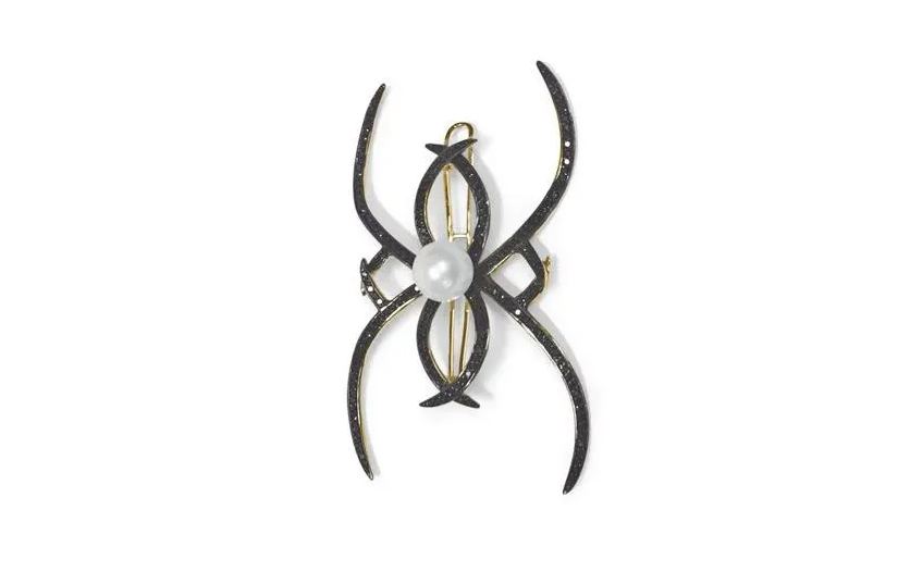 تعتبر المجوهرات على شكل العنكبوت هي طريقة رائعة لإضفاء لمسة من الغموض والرعب على مظهرك في عيد الهالوين، فيمكن أن تحتوي تصاميمها على شكل عنكبوت صغير مرصع بالأحجار الكريمة أو مصنوع من المعدن الملون، على سبيل المثال، غطاء الرأس العنكبوتي من آنا خوري ليس لضعاف القلوب أو أولئك الذين يعانون من رهاب العناكب، العنكبوت الماسي الأسود له جسم لؤلؤي وكماشة ذات مظهر مشؤوم. إنها مثالية لحفلة الهالوين ذات ربطة العنق السوداء.