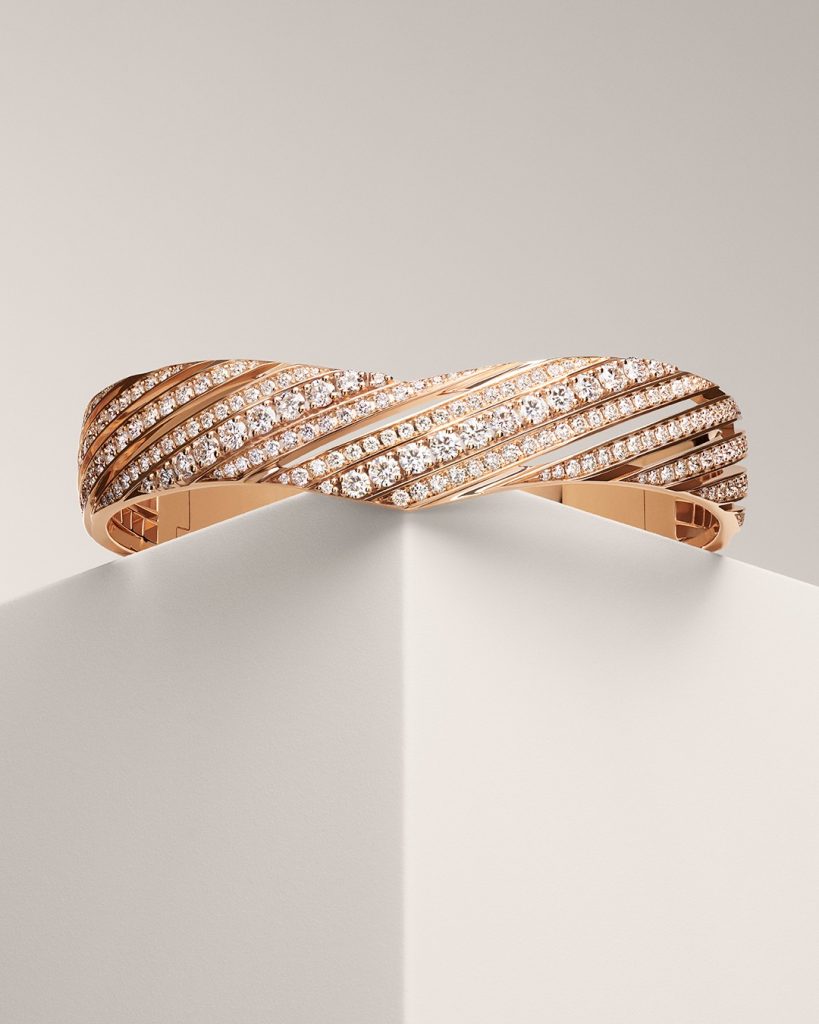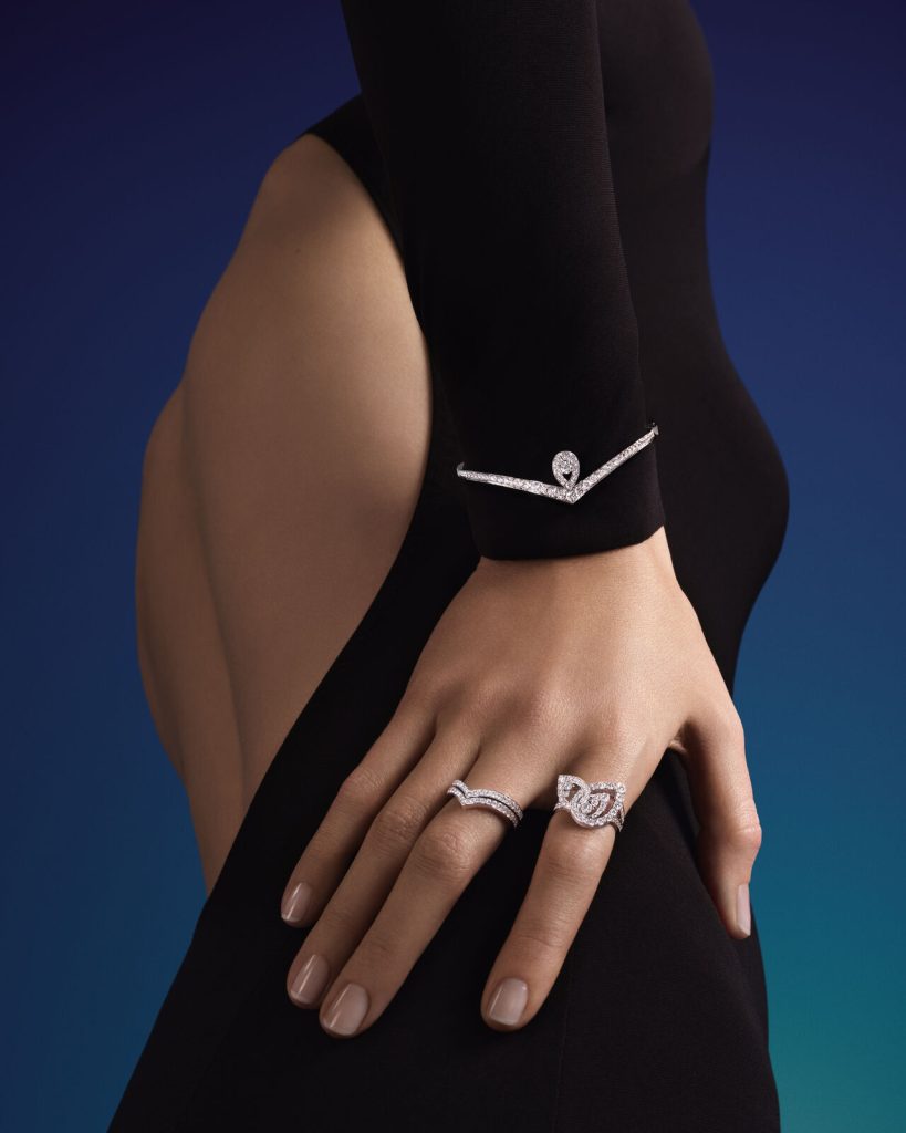 وتتضمن تشكيلة متنوعة من القطع، بما في ذلك الخواتم والأساور والقلائد والأقراط، وقد تم استخدام الماس والأحجار الكريمة الثمينة في تصميمات وصناعة هذه القطع، مما يعزز تألقها وجمالها، ويأتي تنوع الألوان والأشكال في المجموعة، ليتيح للمرأة اختيار القطعة التي تعكس شخصيتها وتلبي ذوقها الفريد.