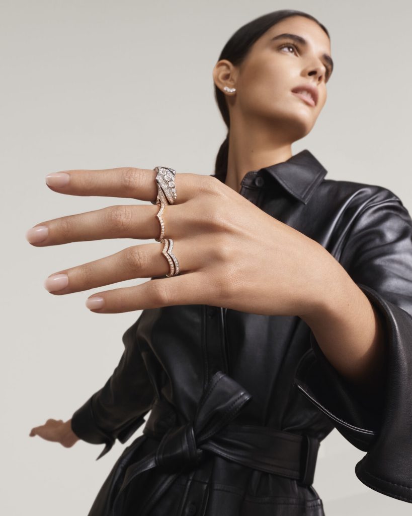 - خاتم “Josephine Aigrette” يجسد هذا الخاتم الفخامة والأناقة بأسلوب لا مثيل له، فهو مصنوع من الذهب الأبيض عيار 18 قيراط، ومرصع بالماس والأحجار الكريمة، يتناغم تصميمه الكلاسيكي مع لمسة عصرية، مما يجعله قطعة مثالية للمرأة العصرية التي تبحث عن تألق استثنائي.